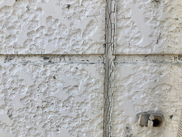 手に白い粉が付く現象で、塗膜が劣化して防水性能が落ちているサインです。この状態の外壁は水を吸いやすく、凍害が発生しやすくなります。